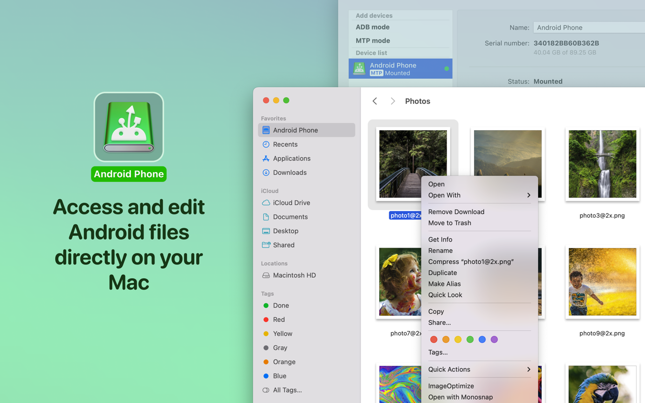 Если вам не очень хочется перемещать файлы, вы можете редактировать свои файлы Android с помощью своего любимого приложения Mac, фактически не сохраняя их на свой компьютер. Что нового: