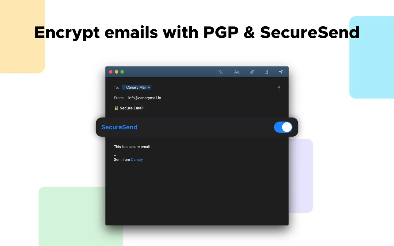 Шифруйте сообщения электронной почты с помощью шифрования Canary с нулевой настройкой или с помощью PGP. Уведомления о прочтении