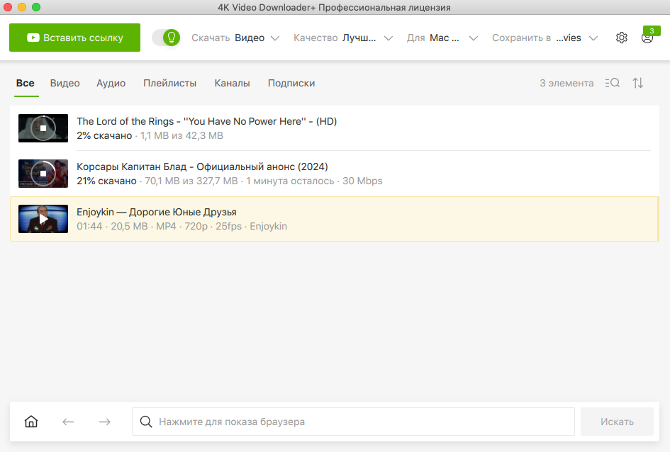Таблэтка: Программа пролечена (не требует введения данных/вводим любые данные) Описание: 4K Video Downloader+ Загружайте видео со всех популярных веб-сайтов, включая YouTube, Vimeo, TikTok, SoundCloud, Facebook, Twitch, Bilibili и других, в высоком качестве. Функции: