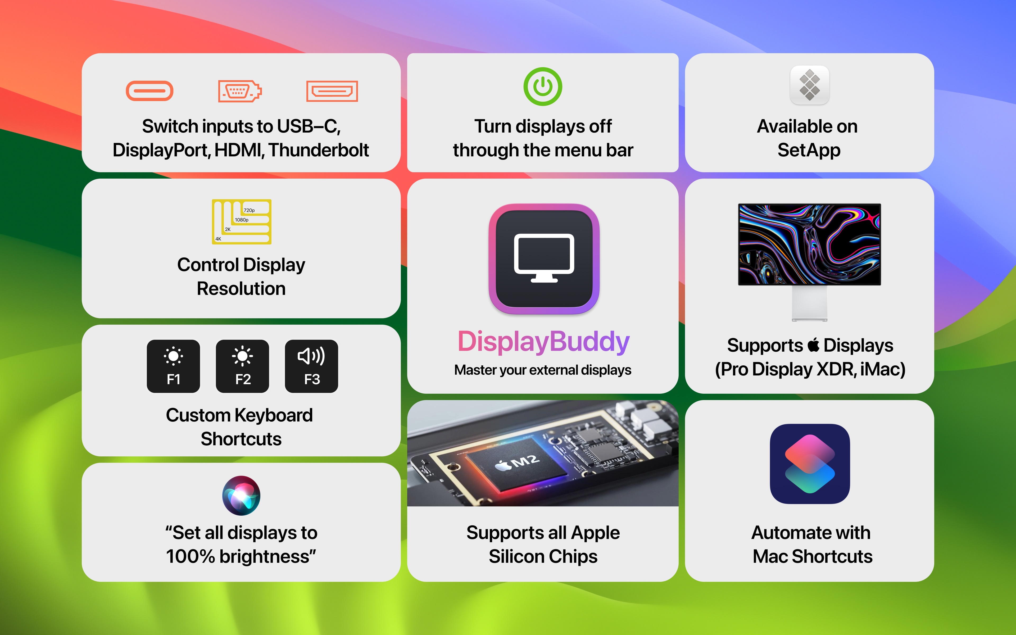 - Полная поддержка DDC на Apple Silicon (M1, M1 Pro и M1 Max, M1 Ultra и M2) и Intel Mac