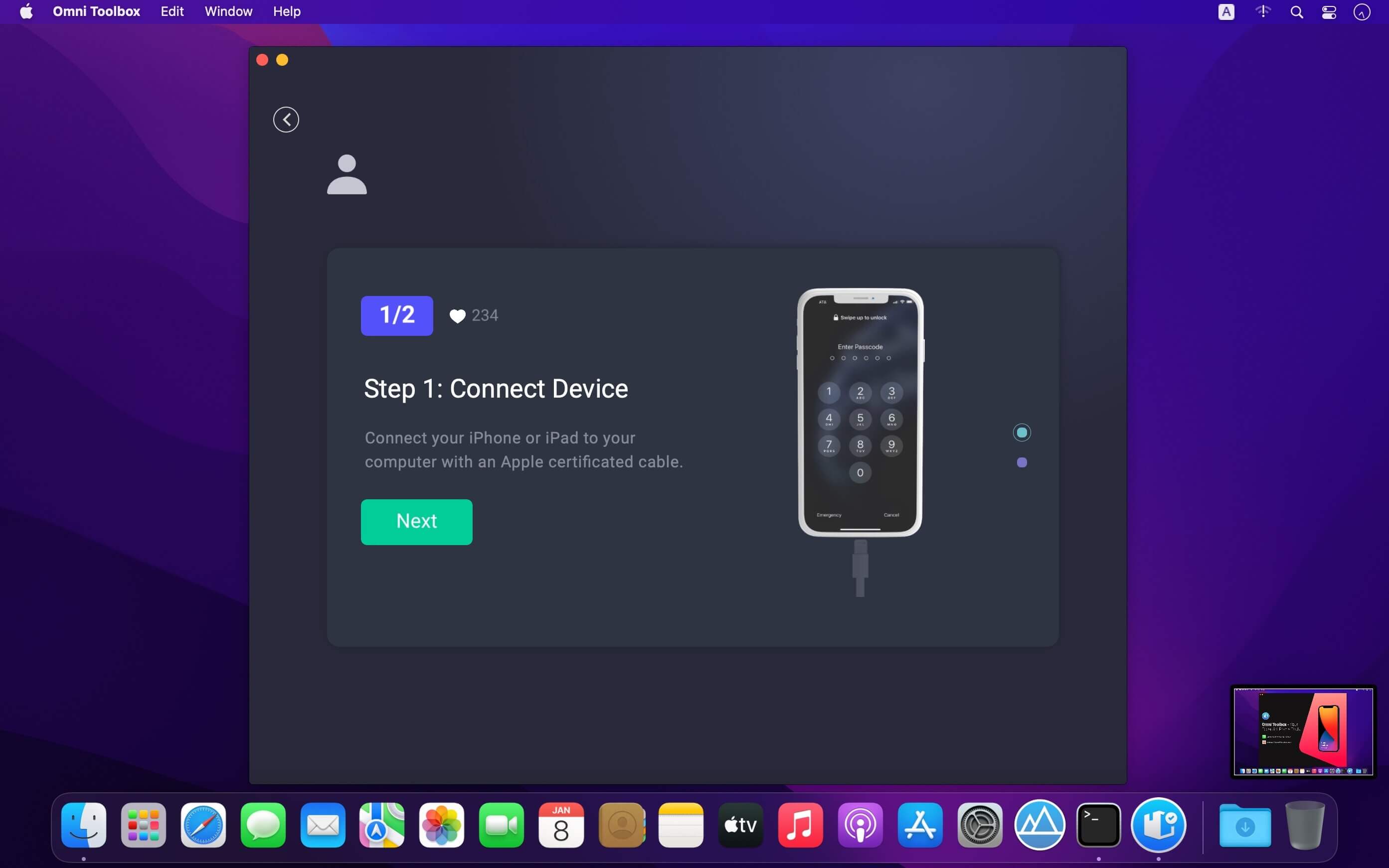Таблэтка: Программа пролечена (не требует введения данных/вводим любые данные) Описание: Omni Toolbox — это обширный набор инструментов для устранения общих сбоев программного обеспечения iPhone, создания графических отчетов об оборудовании iPhone, проверки батареи iPhone, загрузки видео TikTok и создания рингтонов.