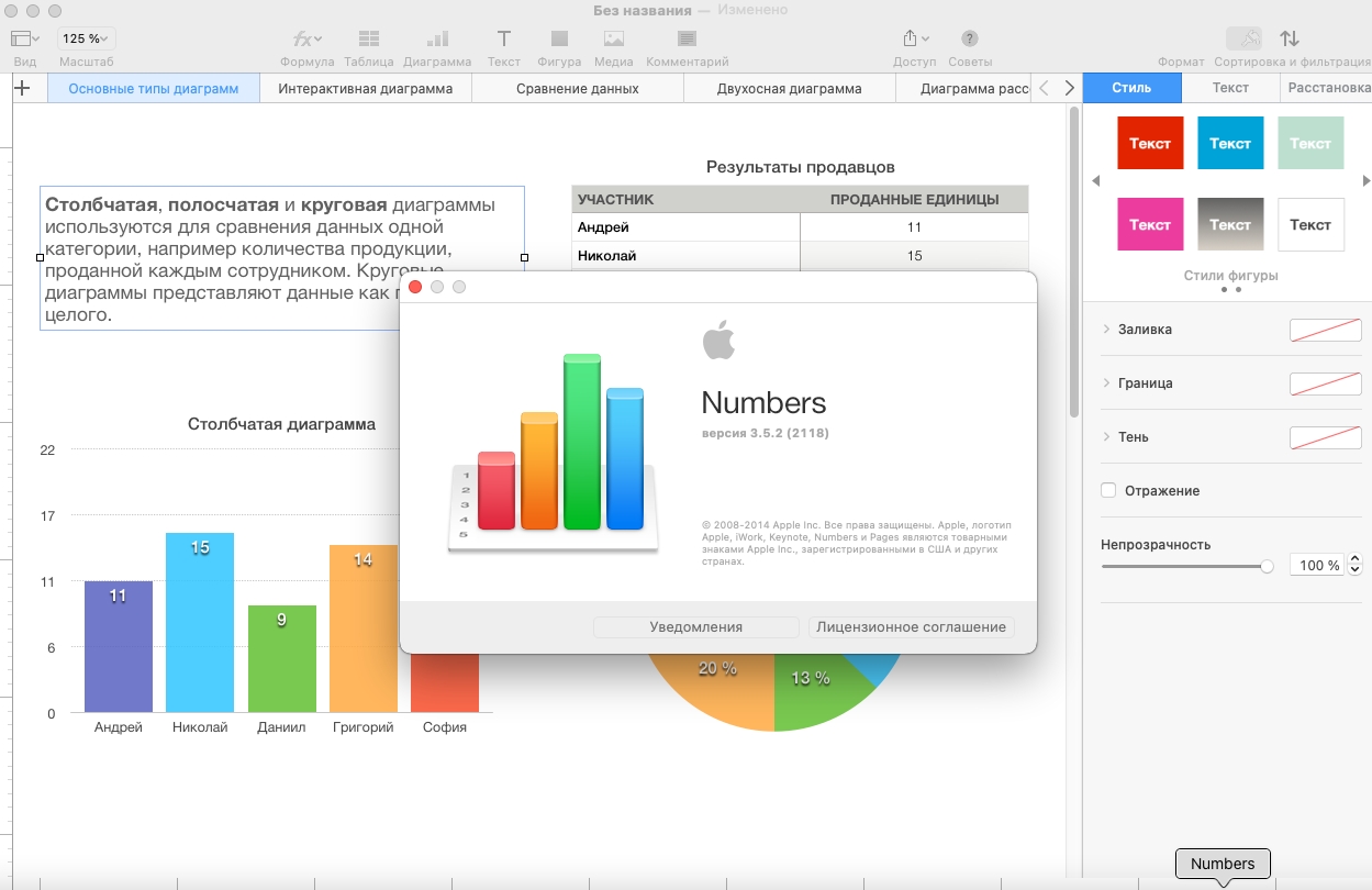 Описание: Создавайте великолепные электронные таблицы с помощью совершенно нового Numbers для Mac. Начните работу с одним из множества шаблонов, разработанных Apple, для вашего домашнего бюджета, контрольного списка, счета-фактуры, ипотечного калькулятора и многого другого. Добавляйте таблицы, диаграммы, текст и изображения в любое место на холсте свободной формы. Как только вы начнете вводить формулу, вы получите мгновенные предложения и встроенную справку для более чем 250 мощных функций. Анимируйте свои данные с помощью новых интерактивных столбчатых, линейчатых, точечных и пузырьковых диаграмм. Легко фильтруйте большие таблицы. Автоматически форматируйте ячейки на основе чисел, текста, дат и длительностей с помощью нового условного выделения. А с совершенно новым механизмом вычислений Numbers работает быстрее, чем когда-либо прежде. Благодаря встроенному iCloud ваши электронные таблицы будут обновляться на всех ваших устройствах. А теперь с бета-версией новых функций совместной работы ваша команда сможет работать вместе одновременно на Mac, iPad, iPhone или iPod touch — даже на ПК с помощью iWork для iCloud. [ Страница в mac app store ] Скриншоты: