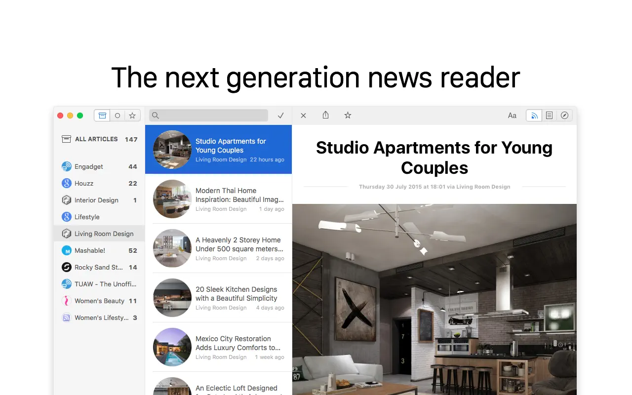 Leaf является удивительным для чтения новостей для вашего Mac. Читайте, делитесь и пользуйтесь поиском новости на всех ваших любимых веб-сайтов.
