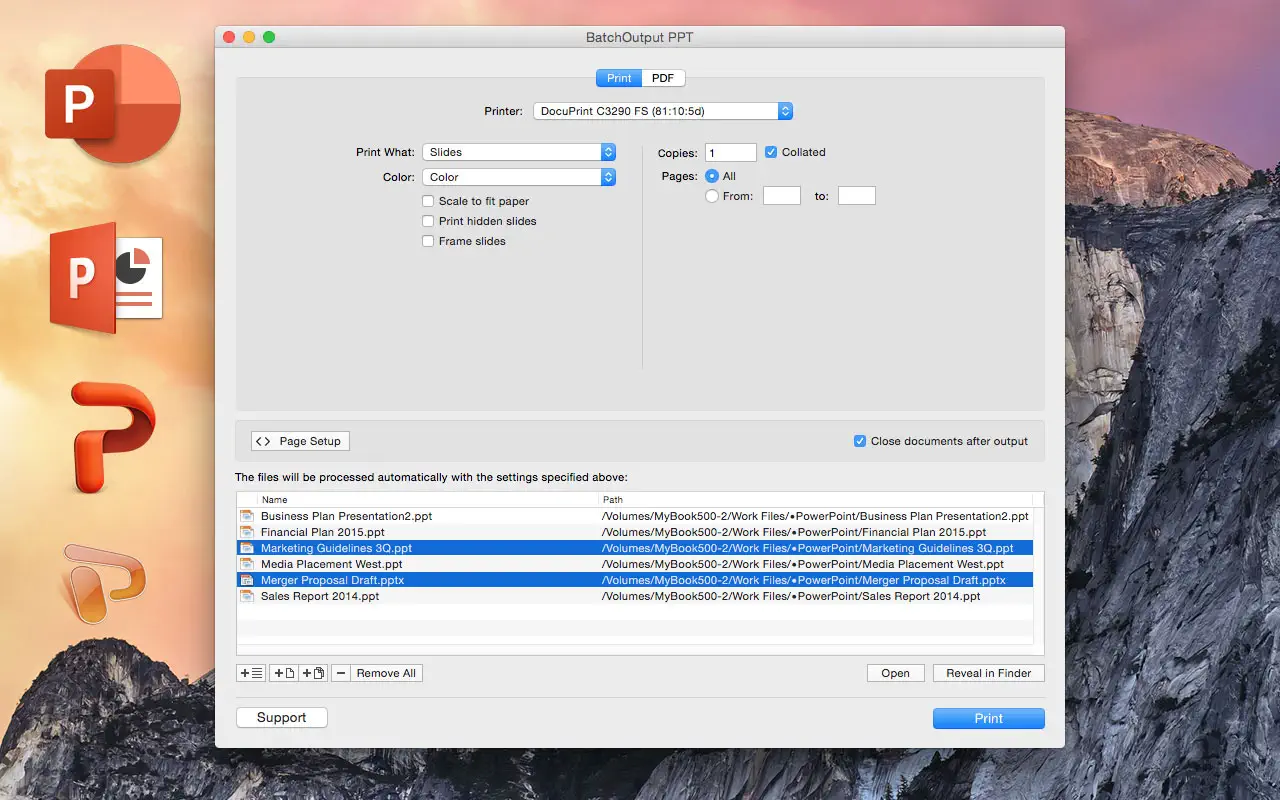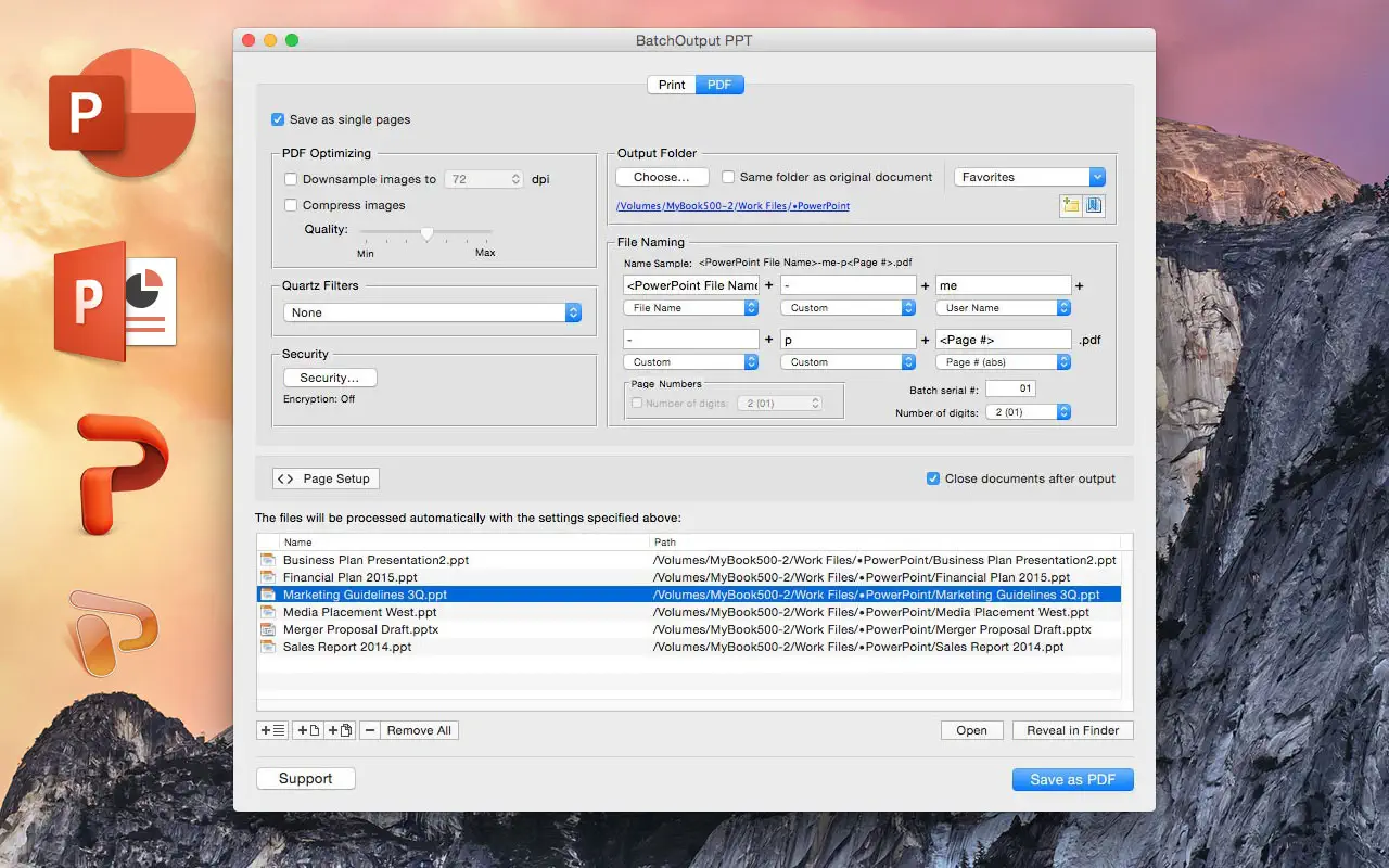 Помимо пакетной печати, BatchOutput PPT предлагает автоматизированное профессиональное создание PDF-файлов. [ Страница в mac app store ] Скриншоты: