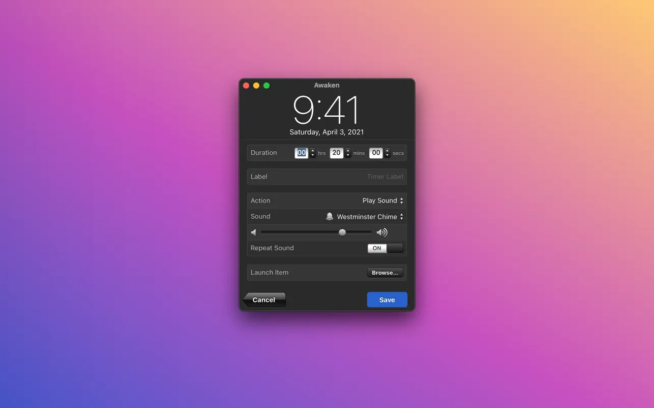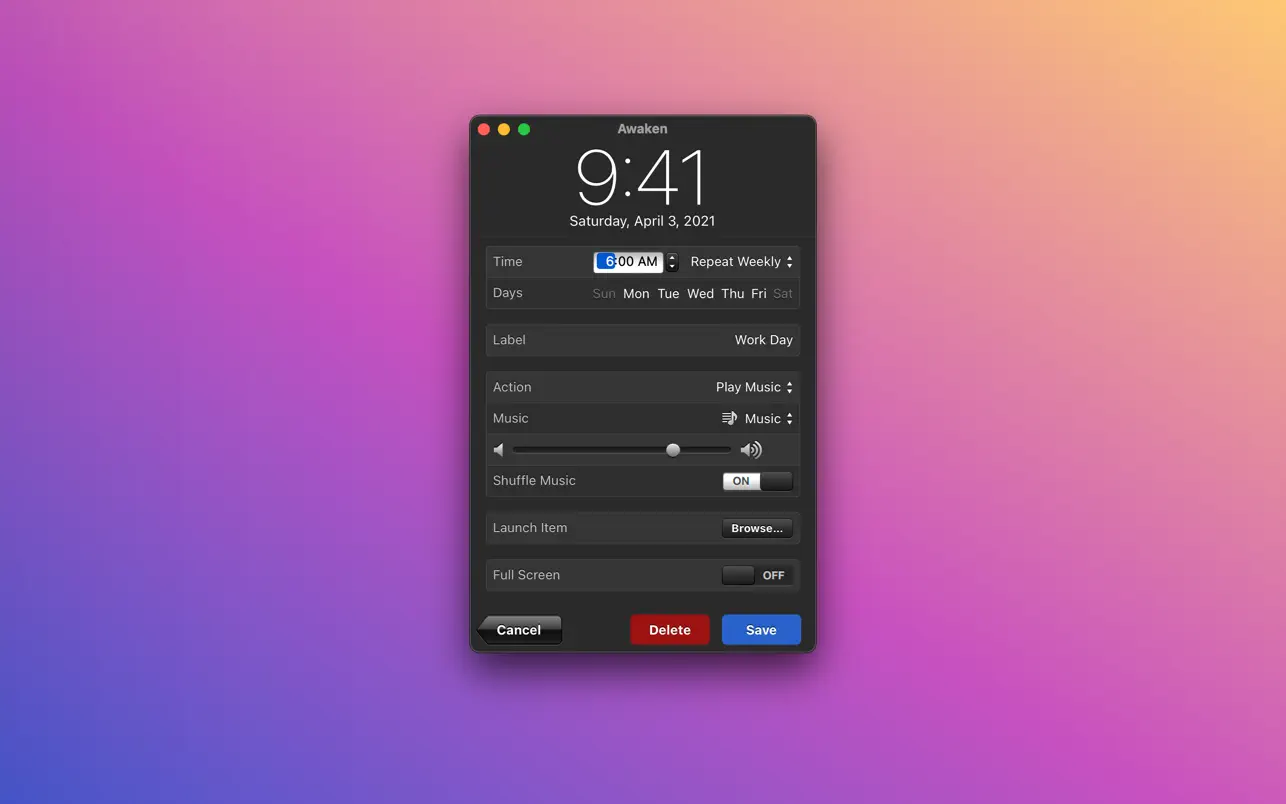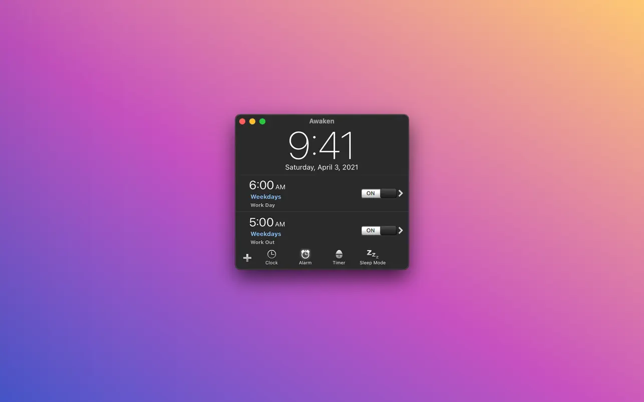 Описание: Awaken — приложение-будильник, которое позволит засыпать и просыпаться под любимую музыку. С ее помощью можно установить несколько будильников (разовых или повторяющихся), которые в назначенный час будут воспроизводить выбранную мелодию или открывать приложение/файл. Помимо будильников можно устанавливать таймеры обратного отсчета, которые по истечении времени могут выполнять те же операции, что и будильник.