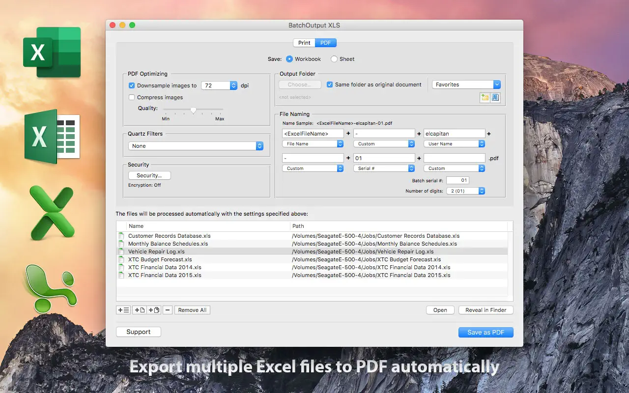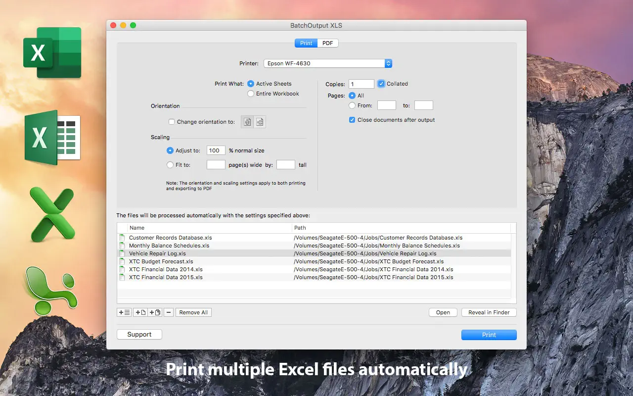 Описание: BatchOutput XLS автоматизирует печать и создание PDF-файлов из Microsoft Excel. Просто добавьте файлы Excel в список BatchOutput XLS, настройте параметры и BatchOutput сделает все остальное автоматически. Например, BatchOutput можно оставить для обработки сотен файлов Excel на ночь, а завершенное задание можно будет забрать на следующее утро. Особенности: В дополнение к пакетной печати BatchOutput XLS предлагает автоматизированное профессиональное создание PDF-файлов — печать и сохранение в формате PDF нескольких документов Excel
