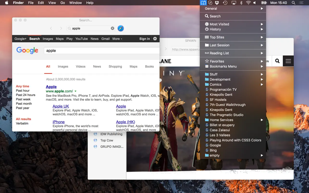 Bookmarks Menu (Safari Menu)