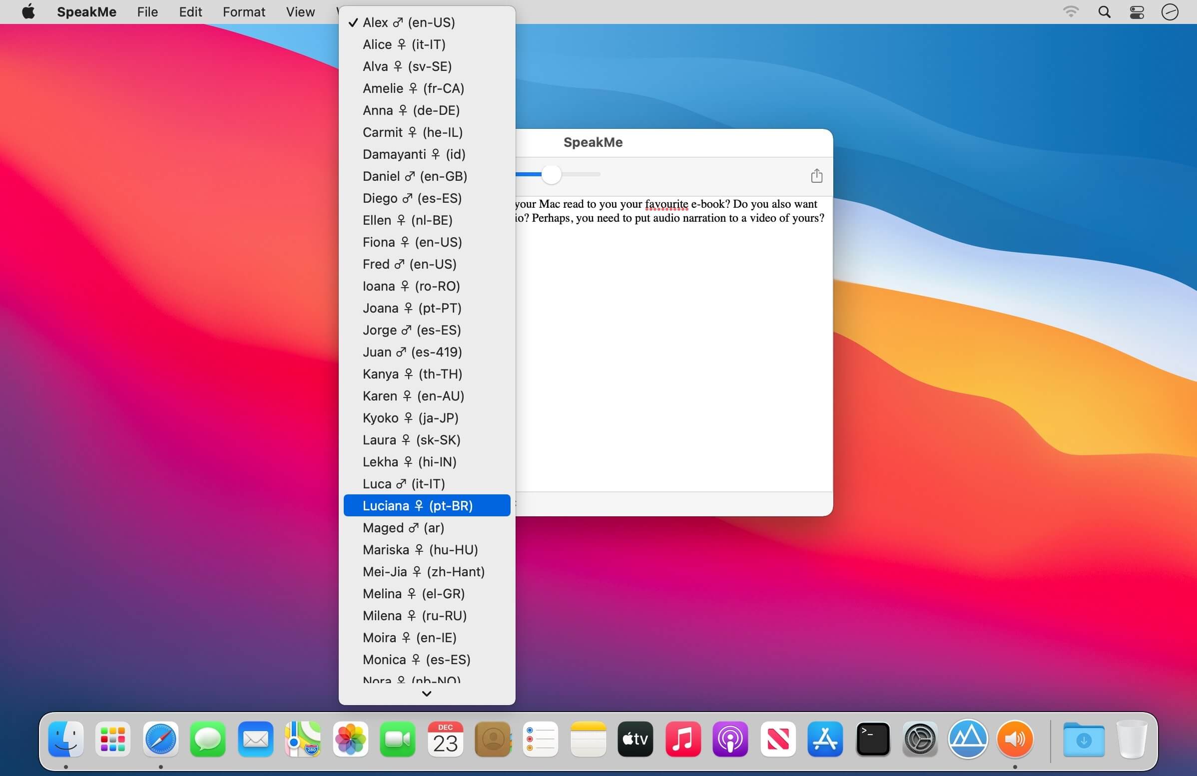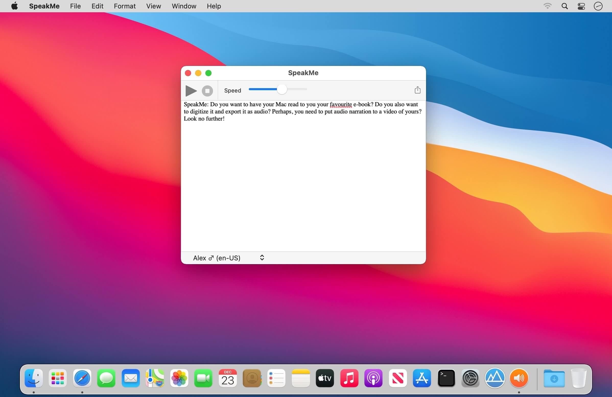 Описание: SpeakMe: Хотите, чтобы ваш Mac читал вам вашу любимую электронную книгу? А может быть, вы хотите оцифровать ее и экспортировать в виде аудио? А может быть, вам нужно наложить звуковое сопровождение на ваш видеофильм? Смотрите дальше!