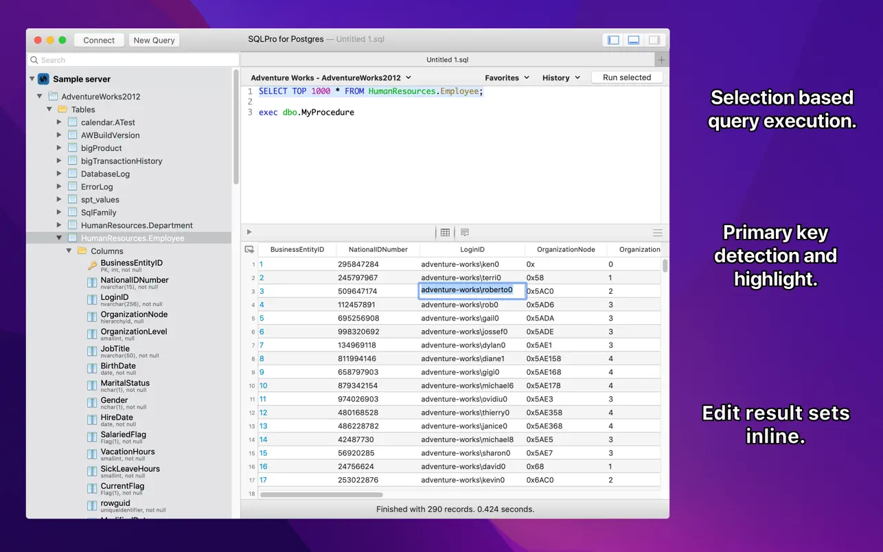 Описание: SQLPro для MSSQL - легкий клиент для управление базами данных Microsoft SQL Server, что позволяет получить быстрый и простой доступ к MSSQL серверам, в том числе через облачные сервисы, такие как SQL Azure или Amazon RDS. Особенности:
