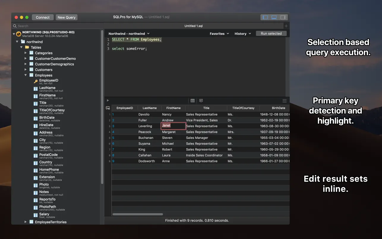 - Быстрый доступ к таблицам, столбцам и многое другое.