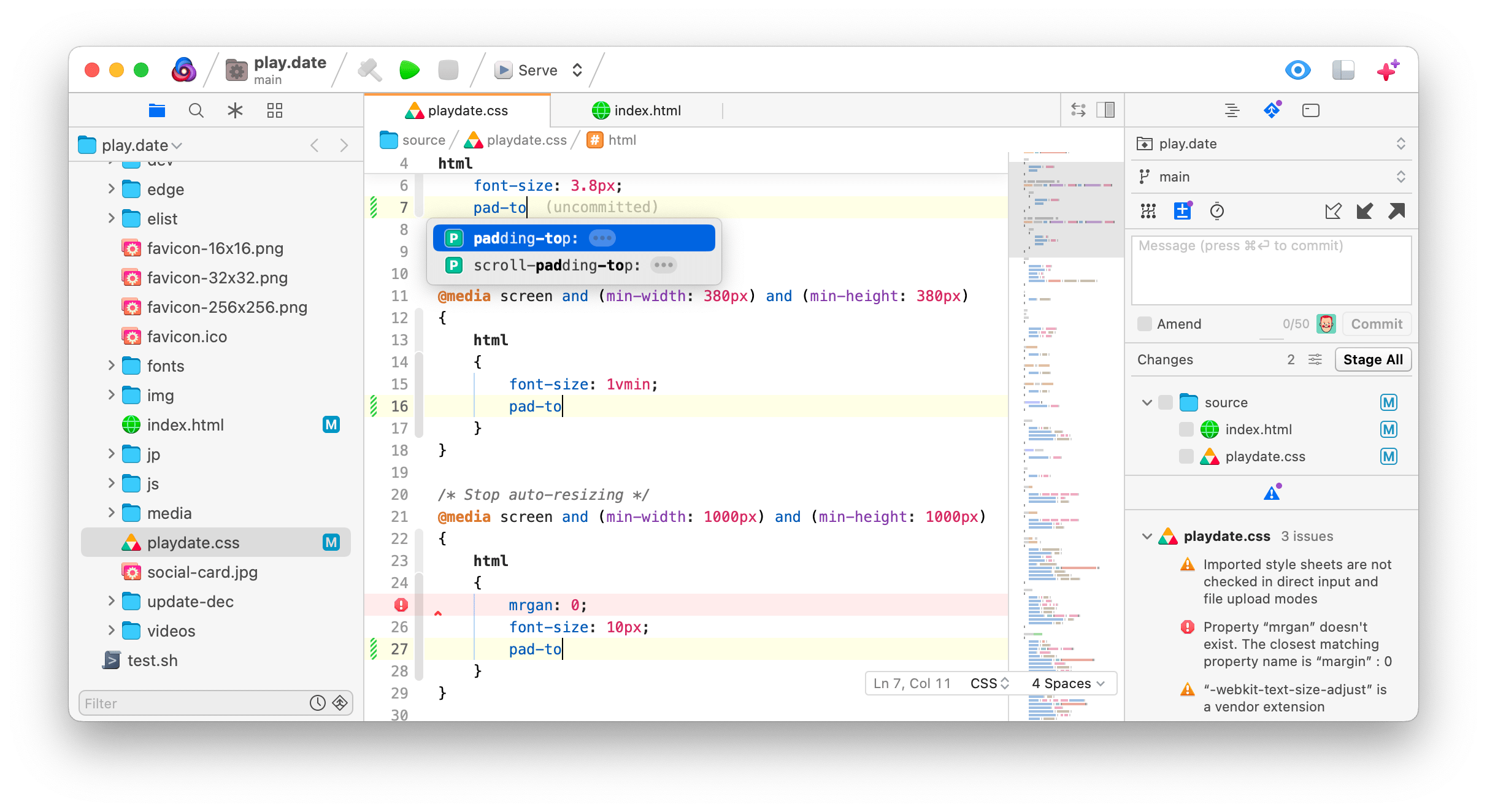 Для самых любопытных в Nova встроена поддержка CoffeeScript, CSS, Diff, ERB, Haml, HTML, INI, JavaScript, JSON, JSX, Less, Lua, Markdown, Perl, PHP, Python, Ruby, Sass, SCSS, Smarty, SQL, TSX, TypeScript, XML и YAML.