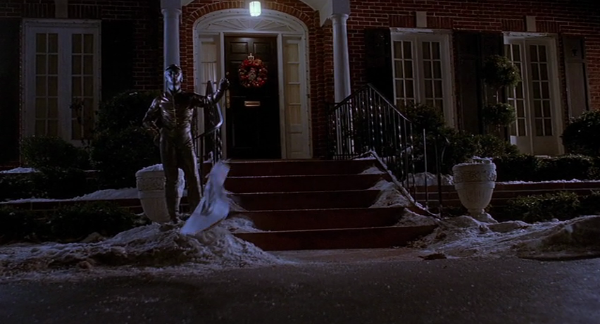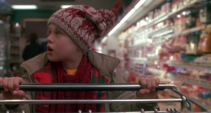 Кевин в разное время смотрит дома по телевизору мультфильм «Как Гринч украл Рождество» Чака Джонса и шоу Джонни Карсона.
