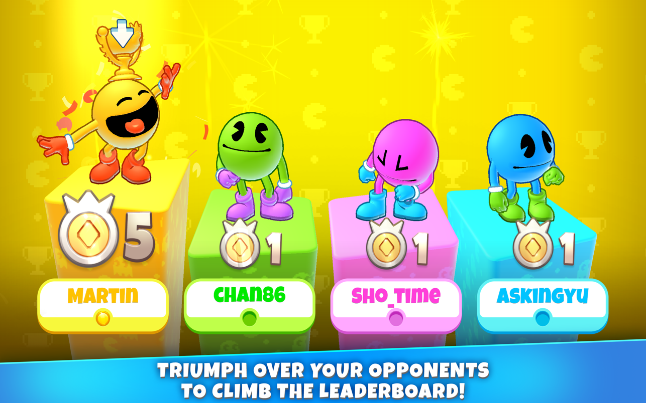 Также остерегайтесь Щекотки, нового Призрака, который отравляет вас случайным отрицательным эффектом при прикосновении. Игроки, ставшие призраками, могут вернуться как PAC-MAN, если им удастся съесть еще одного PAC-MAN: не отказывайтесь от победы и возвращайтесь в бой! Но остерегайтесь 256-глюка! Если в ближайшее время не будет победителя, лабиринт начнет рушиться на вас, а безопасная зона будет уменьшаться до тех пор, пока не останется только один PAC-MAN! Следите за обновлениями, так как со временем после выхода игры будет выпущено больше игровых режимов и лабиринтов: веселье никогда не прекращается с PAC-MAN PARTY ROYALE! Скриншоты:-