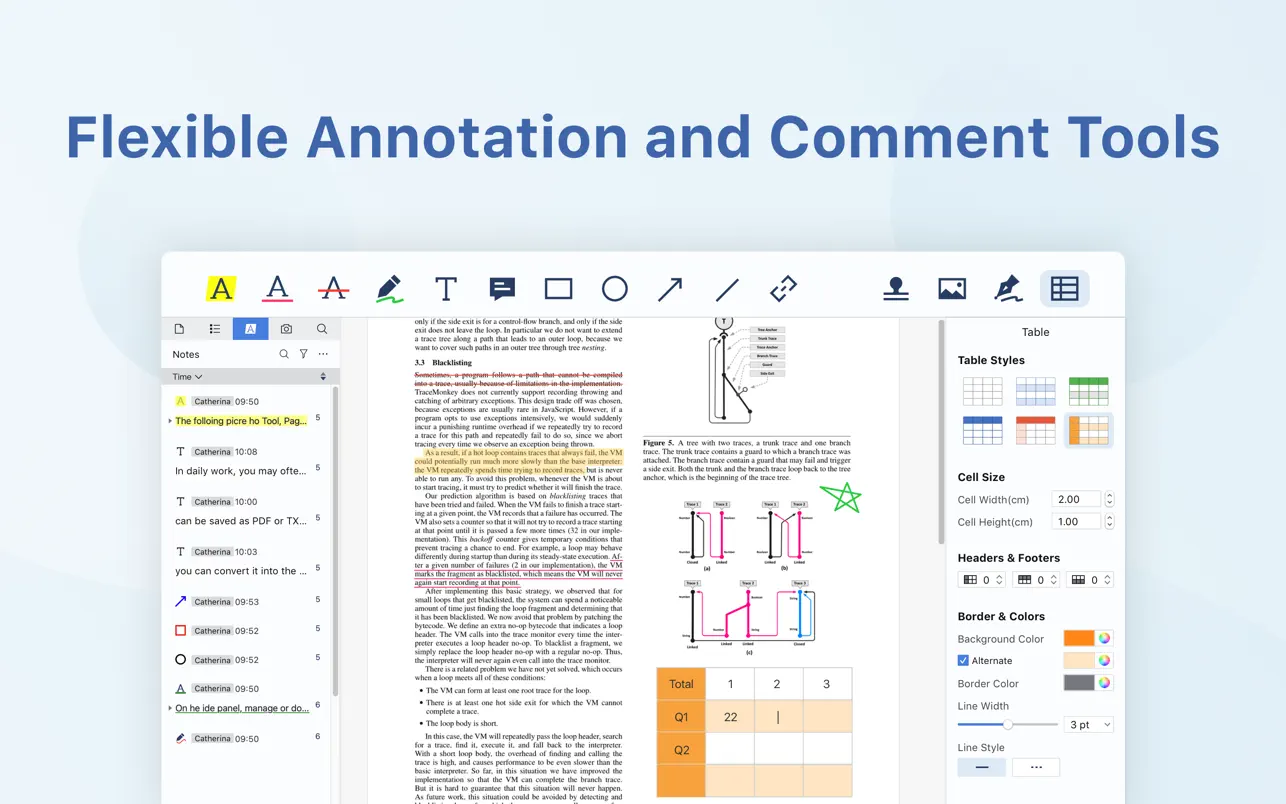 Классические инструменты: добавляйте примечания к PDF-файлам с выделением, подчеркиванием, зачеркиванием, примечанием, рукописным текстом, текстовым полем, закрепленной заметкой, прямоугольником, кругом, линией и т. д.?Непрерывные примечания – постоянно добавляйте комментарии.