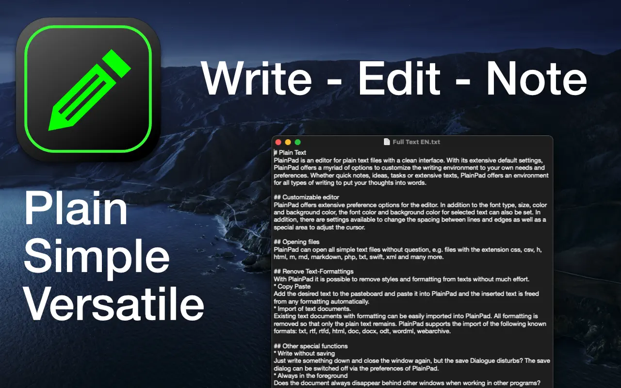 PlainPad Год выпуска: 2022 Версия: 1.3.1 Разработчик: Xelaton Software Платформа: Intel Язык интерфейса: английский Таблэтка: Программа пролечена (не требует введения данных/вводим любые данные) Системные требования: