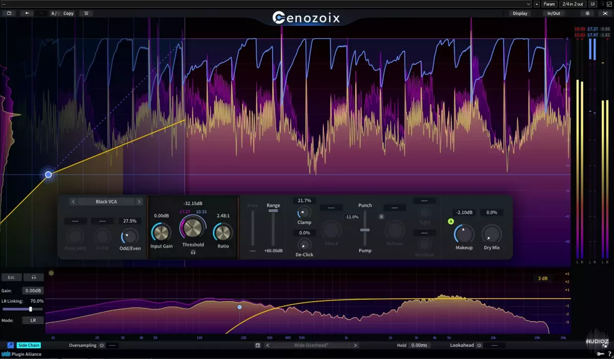 Традиционные методы сглаживания, направленные на предотвращение высокочастотных искажений, основаны на передискретизации, требующей больших затрат процессора. Антидеривативное сглаживание (ADAA) - это технология обработки звука, разработанная компанией Native Instruments и изначально использовавшаяся в формирователях волн. Вместо того чтобы зависеть от передискретизации, она использует передовую математику для уменьшения алиасинга без большой нагрузки на процессор. Cenozoix Compressor - первый плагин компрессора, в котором реализована технология ADAA.