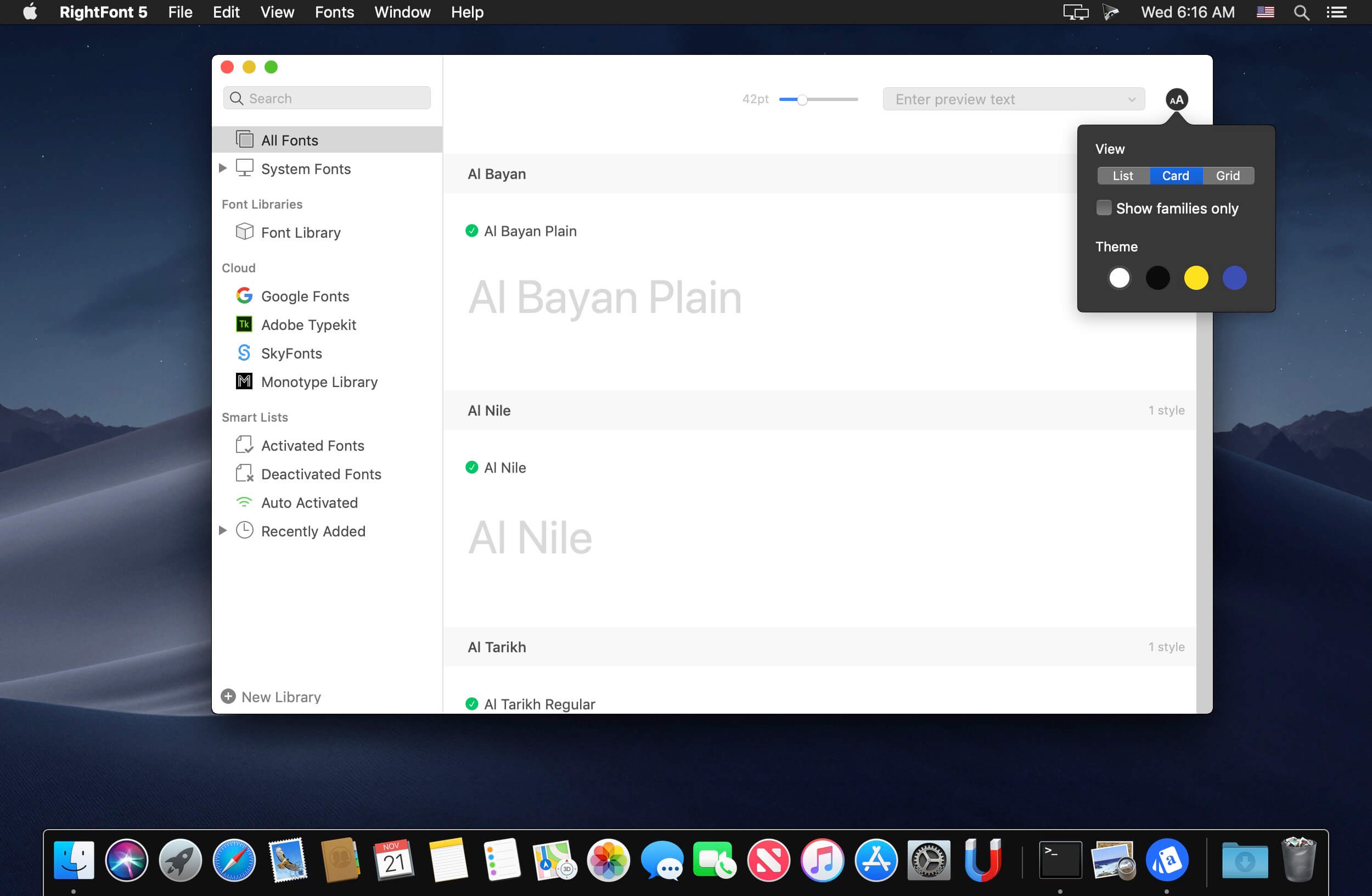 RightFont — это инновационное, красивое и профессиональное приложение для управления шрифтами для macOS, помогающее дизайнерам просматривать, устанавливать, синхронизировать файлы шрифтов и управлять ими. RightFont — это легкий менеджер шрифтов с чистым и красивым интерфейсом. Он предлагает множество функций, которые помогут вам с легкостью управлять всеми вашими локальными шрифтами. Возможности: