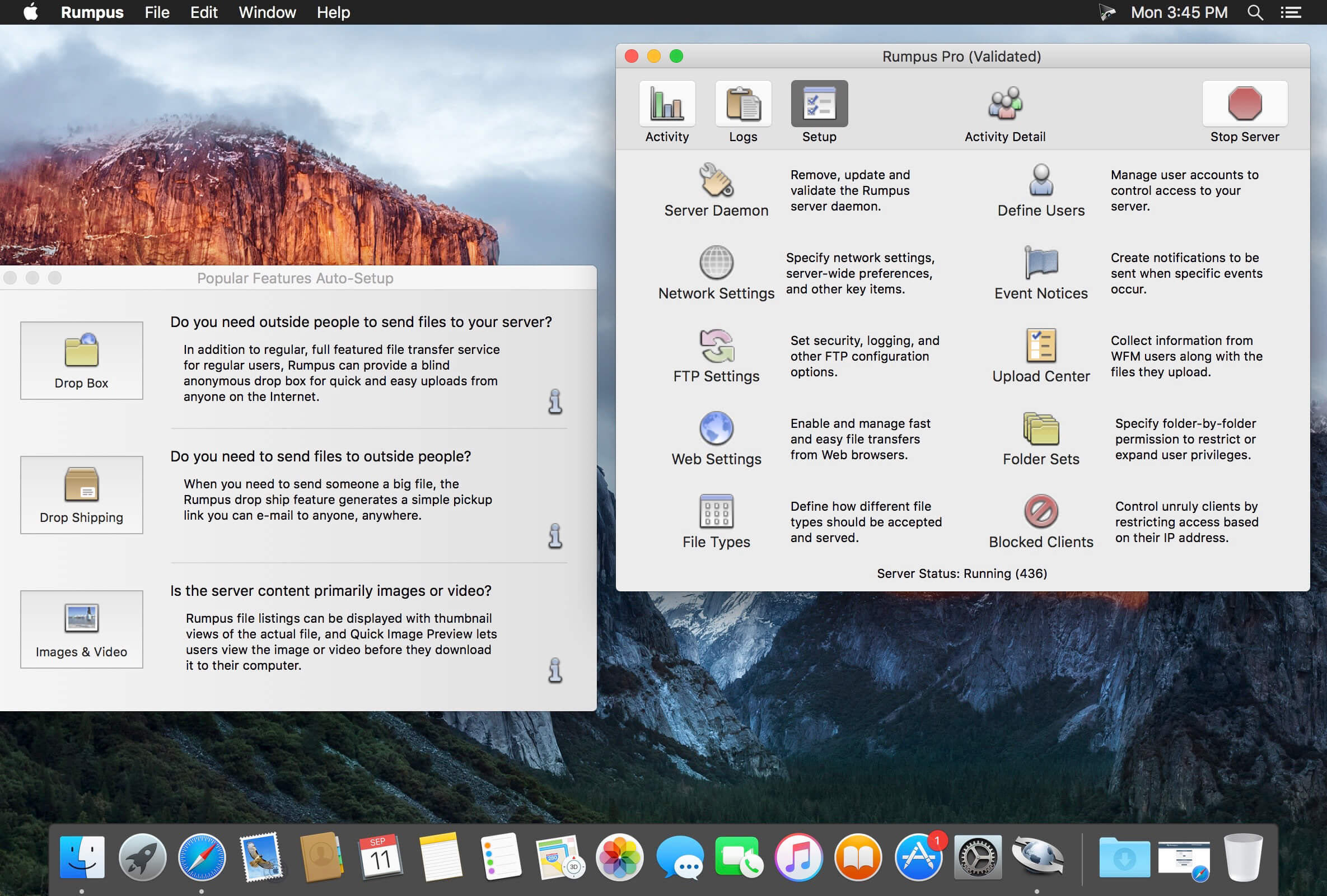 Rumpus работает на любом компьютере Mac под управлением OS X 10.5 или более поздней версии. При этом не требуется использование Java, а объем занимаемой памяти и потребление процессора минимальны. Вы также оцените исчерпывающие справочные страницы и статьи, которые охватывают не только использование Rumpus, но и сетевые проблемы, а также общую информацию о FTP, необходимую в случае возникновения вопросов. Профессиональная техническая поддержка