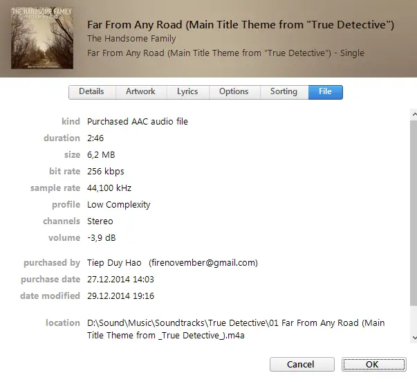 The Handsome Family - Far from Any Road (Main Title Theme from "True Detective")-Жанр: Soundtrack Страна: USA Год издания: 2014 Издатель (лейбл): Carrot Top Records Аудио кодек: AAC Тип рипа: tracks Битрейт аудио: VBR 256 kbps Продолжительность: 00:02:46 Источник: iTunes Store Вшитые тексты: не добавлены Наличие сканов в содержимом раздачи: нет Треклист: