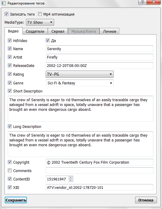 Полное имя : F:\Firefly\01 Serenity (HD).m4v