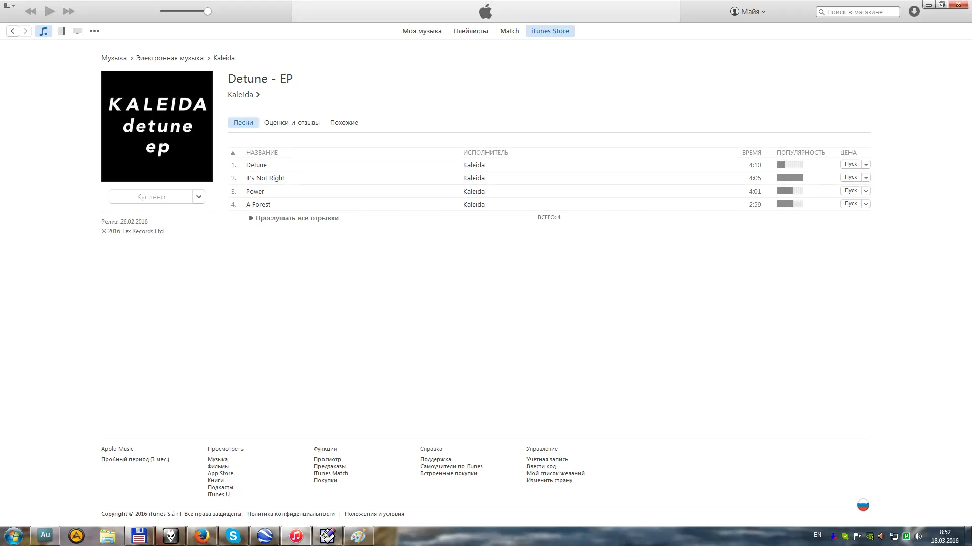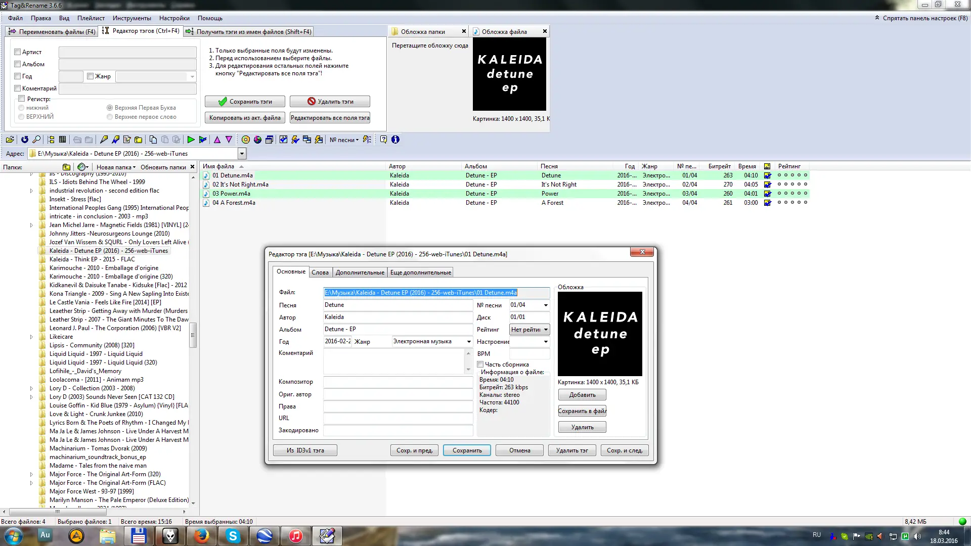 Kaleida - Detune EP-Жанр: Synth-pop Страна: UK Год издания: 2016 Издатель (лейбл): Lex Records Каталожный номер: 878390003426 Аудио кодек: AAC Тип рипа: tracks Битрейт аудио: 256 kbps Продолжительность: 00:15:16 Источник: Своя покупка Вшитые тексты: не добавлены Наличие сканов в содержимом раздачи: нет-Треклист: 01. Detune [4:10] 02. It's Not Right [4:05] 03. Power [4:01] 04. A Forest [2:59] -