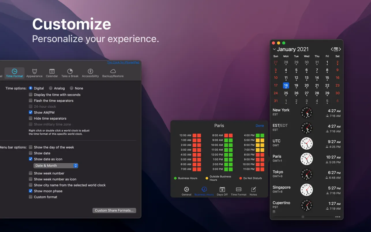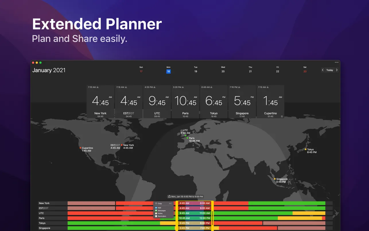 легко и эффективно отслеживайте свои контакты в разных часовых поясах.