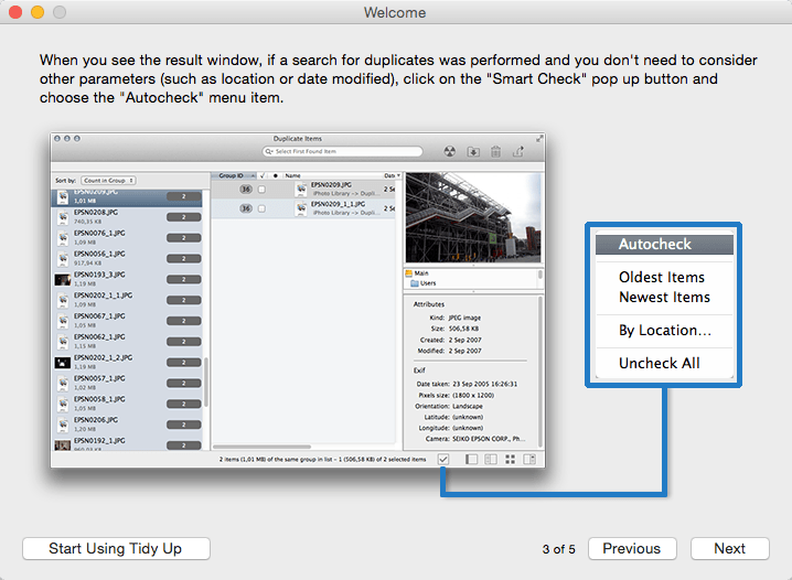 Tidy Up - приложение предназначено для поиска дубликатов файлов и папок на любых дисках, в том числе внешних и сетевых. Простой и понятный интерфейс, поиск по огромному количеству параметров - более 90 предопределенных запросов, мастер поисковых запросов, который поможет вам оптимизировать ваш поиск, модуль системы безопасности, какой гарантирует вам, что хоть одна копия, но будет сохранена на вашем диске и множество других функций, какие помогут вам создать нужную рабочую обстановку