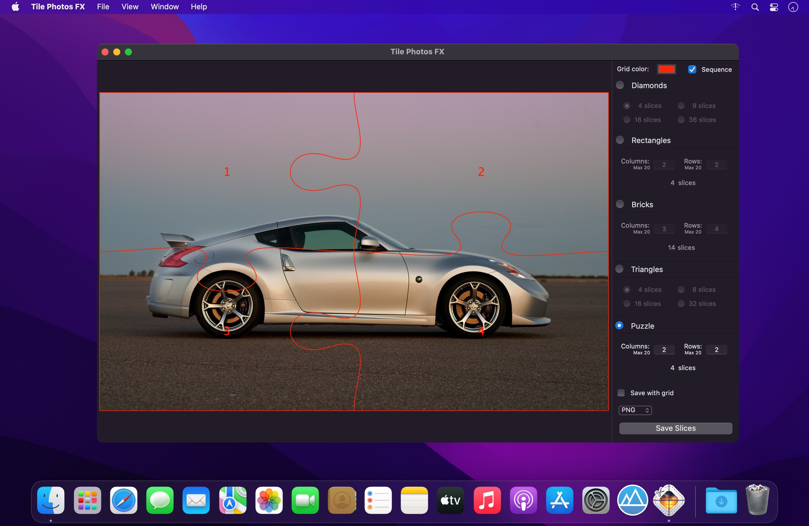 Разрезайте изображения на прямоугольные, треугольные, ромбовидные, кирпичные формы и головоломки.