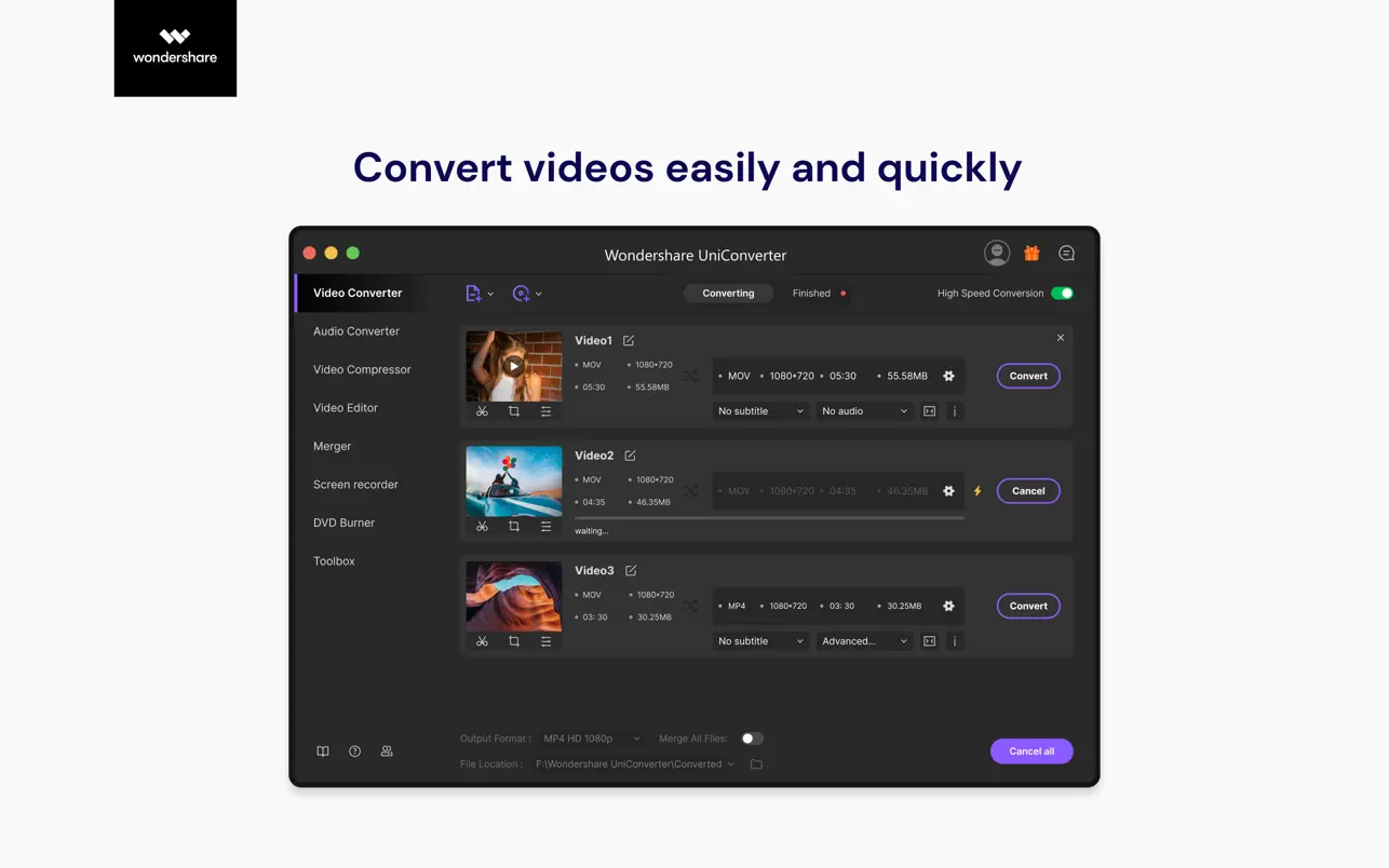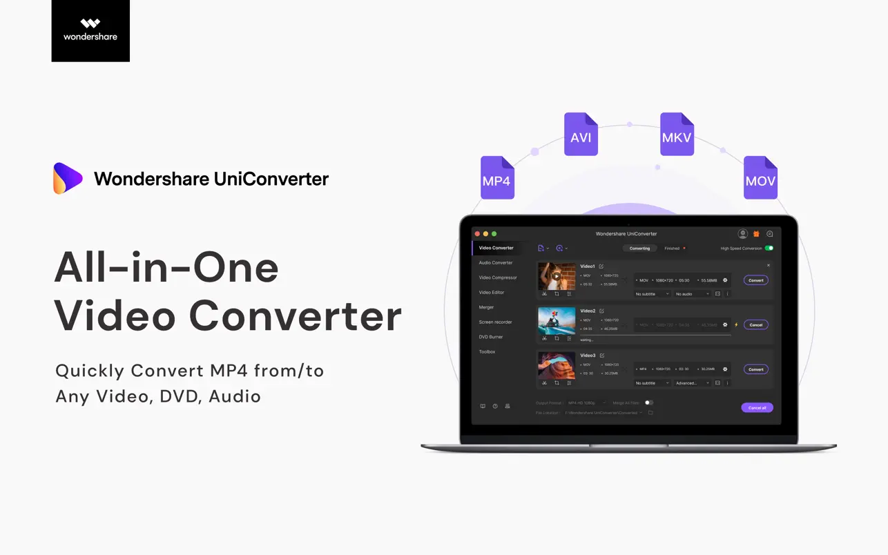 Конвертируйте любой видео/аудио файл в MP4, MOV, AVI, MKV и более 1000 других форматов.